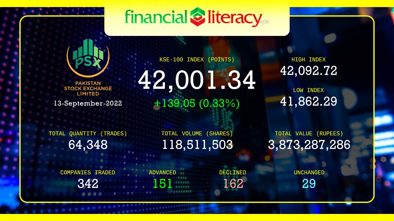 Categories Stock Market Stock Market Summary 13-September-2022 Post author By Ahsan Raza Post date September 13, 2022 Current index42,001.34Change+139.05Percent Change0.33% ← Stock Market Performing Companies 12-September-2022 → Stock Market Performing Companies 13-September-2022