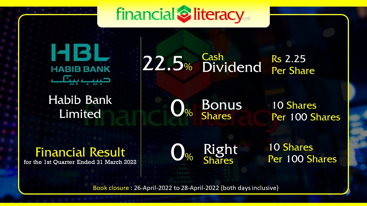 Habib Bank Limited. # HBL Announced 22.5% Dividend Rs 2.25 per share 0% Bonus and 0% Rights