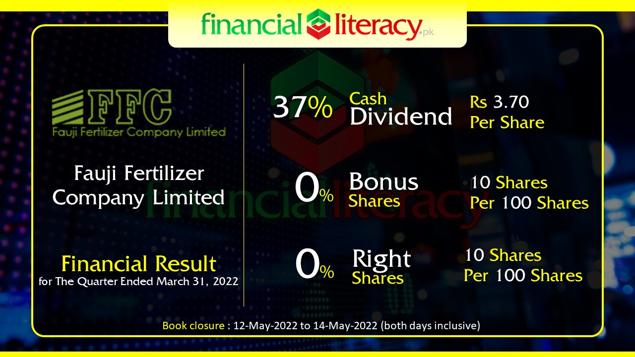 Fauji Fertilizer Company Limited. #FFC Announced 37% Dividend Rs 3.70 per share 0% Bonus and 0% Rights