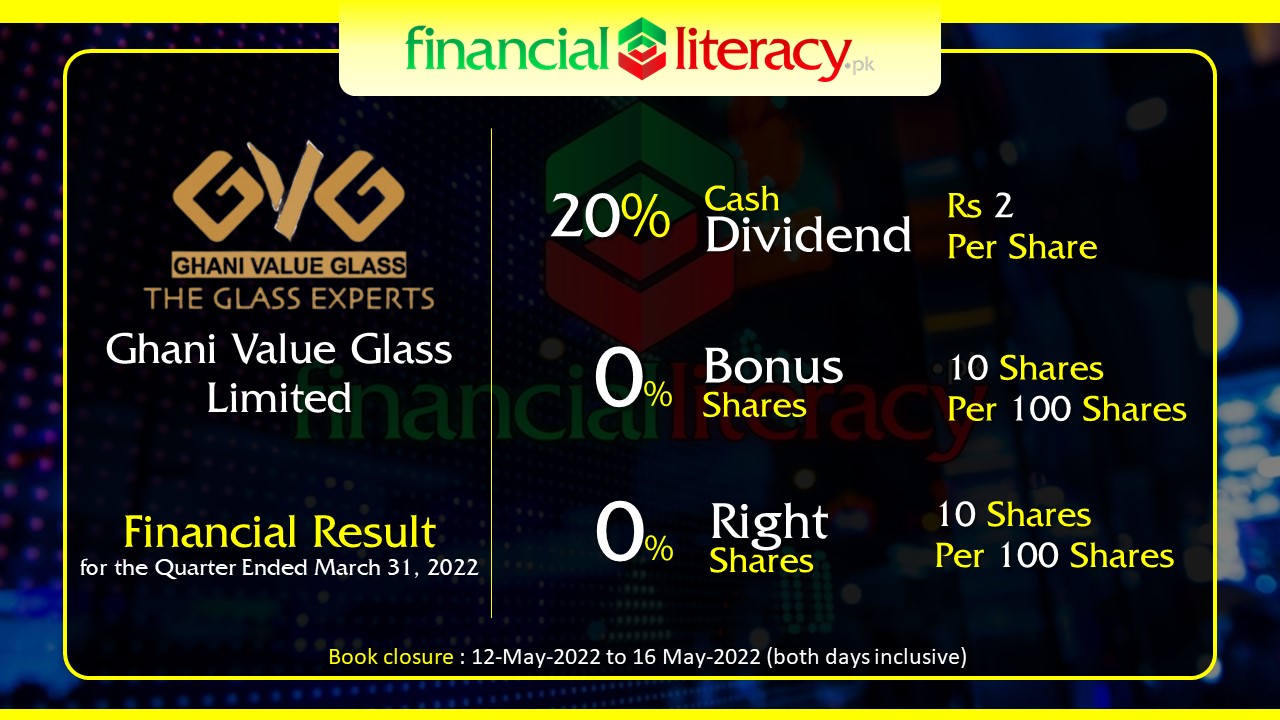Ghani Value Glass Limited. #GVGL Announced 20% Dividend Rs 2 per share 0% Bonus and 0% Rights