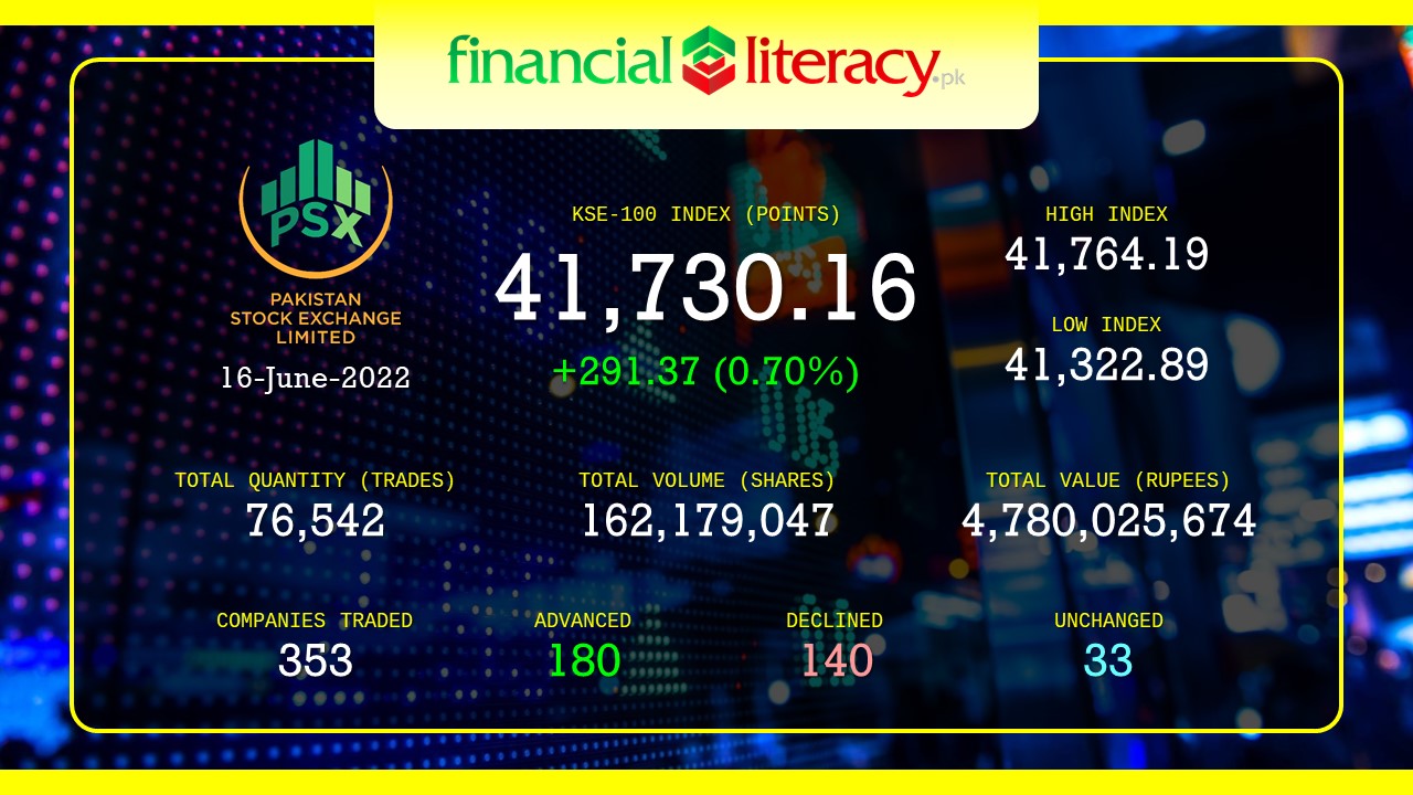 TOP ACTIVE STOCKS SYMBOL PRICE CHANGE VOLUME WTL 1.42 -0.05 (-3.40%) 21,553,500 OBOYR1 2.01 1.00 (99.01%) 11,396,500 MLCF 27.73 0.99 (3.70%) 10,230,095 PRL 17.40 0.16 (0.93%) 6,497,704 CNERGY 5.14 -0.02 (-0.39%) 5,885,356 DCL 5.43 0.01 (0.18%) 5,103,500 HUMNL 7.18 0.06 (0.84%) 4,626,500 OGDC 81.45 1.34 (1.67%) 4,484,707 KEL 2.59 0.07 (2.78%) 3,986,500 DGKC 59.38 1.52 (2.63%) 3,905,712 TOP ADVANCERS SYMBOL PRICE CHANGE VOLUME OBOYR1 2.01 […]